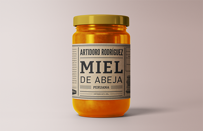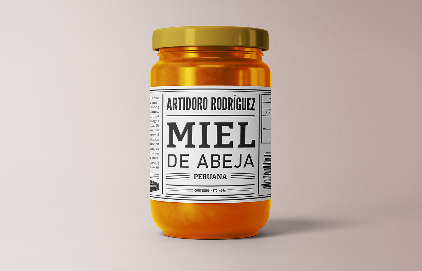 Artidoro Rodríguez contacted me again, this time in order to help them design the packaging for a new product, unrelated to their previous lines: honey. This time I departed completely from the previous styles I designed for them, since the needs were very different. In order to appeal to the gourmet audience of Peru, I opted for an elegant yet streamlined design, inspired by the labels of old apothecaries.